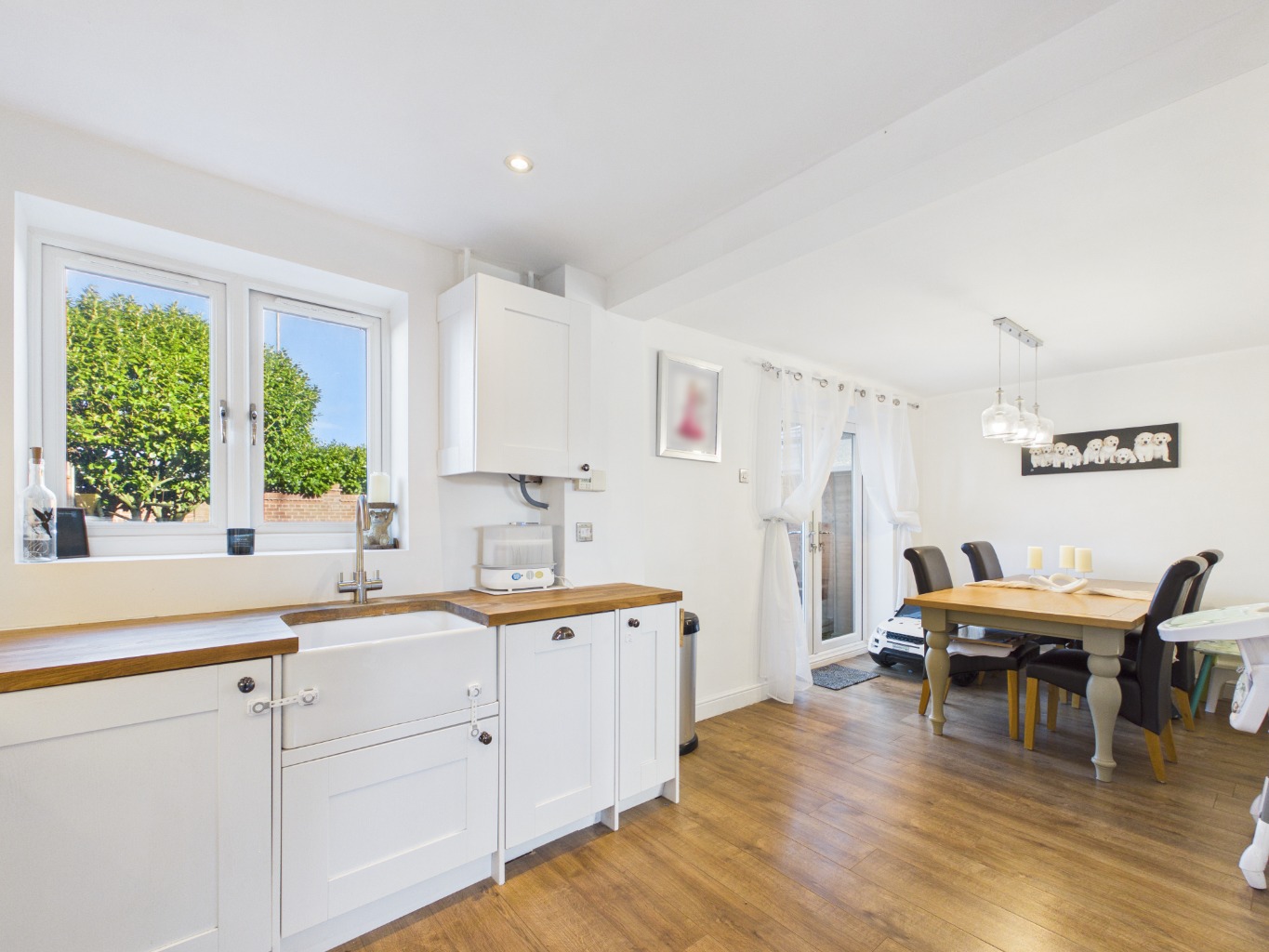 This property is a fantastic example of a modernised family home in a prime location. The current owners have done a brilliant job of reconfiguring the layout, creating a bright and airy open-plan space that works perfectly for day-to-day living and entertaining. The kitchen is particularly impressive, with its contemporary design and integrated appliances, and the French doors leading to the garden really bring the outside in. Upstairs, the three double bedrooms are a great size, and the bathroom is finished to a high standard. The rear garden is low-maintenance, with a covered patio area that’s ideal for outdoor dining or relaxing. With off-street parking and a quiet cul-de-sac position, this property ticks all the boxes for a family home.