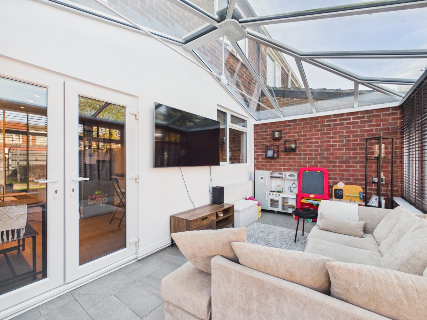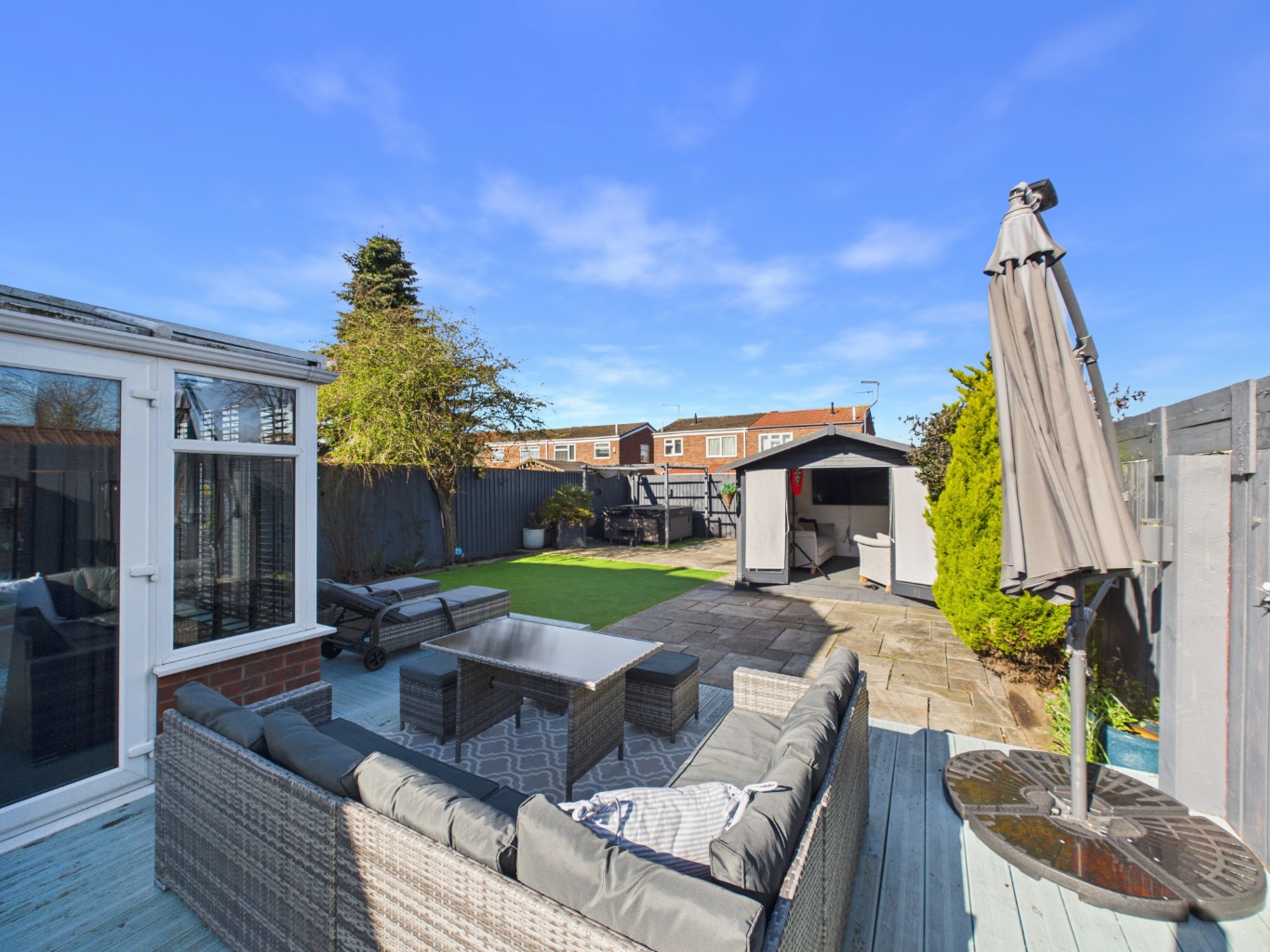 We’ve loved living in this home and have enjoyed every part of it. The living room is one of our favourite spaces, especially with the log burner—it’s so cosy in the evenings. The kitchen has been great for family meals, and the breakfast bar is perfect for quick bites or chatting while cooking. The conservatory has been a fantastic addition, giving us extra space to relax and enjoy the garden views. Speaking of the garden, it’s been amazing for hosting friends and family, especially with the bar and shed—it’s a real social hub in the summer. The location has been ideal for us, with great schools nearby and everything we need just a short distance away. It’s a friendly area, and we’ve always felt part of the community here.